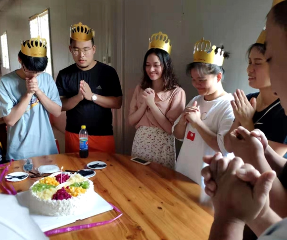 到下午3點,大家戀戀不舍地上岸返回景區(qū)休整地,團(tuán)隊漂流結(jié)束,一個個沖洗整理好,進(jìn)入休息區(qū)。迎著生日歌緩緩而來的是插滿蠟燭的蛋糕,公司為上半年生日的員工準(zhǔn)備了生日蛋糕,大家一起唱了生日歌,切蛋糕,員工們感謝公司的精心安排,感受到了大家庭的溫暖。