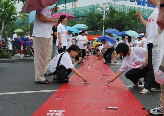 健步走隊(duì)伍在麗水市委書(shū)記陳榮高的帶領(lǐng)下,從濱水公園出發(fā),沿著花園路-囿山路-宇雷路-江濱路返回濱水公園,盡管活動(dòng)開(kāi)始后不久,天空就下起了小雨,但是這絲毫沒(méi)能阻擋大家的熱情,隊(duì)伍冒雨堅(jiān)持走完了全程。到達(dá)終點(diǎn)后,大家在印有麗水市“全民健身日”暨萬(wàn)人健步走活動(dòng)的橫幅上簽字。