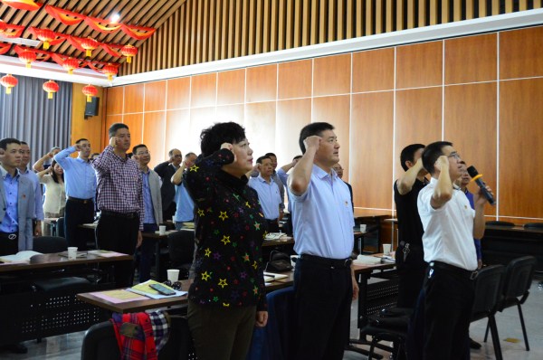 “我志愿加入中國共產(chǎn)黨,擁護(hù)黨的綱領(lǐng),遵守黨的章程,履行黨員義務(wù),執(zhí)行黨的決定,嚴(yán)守黨的紀(jì)律,保守黨的秘密,對黨忠誠,積極工作,為共產(chǎn)主義奮斗終身,隨時準(zhǔn)備為黨和人民犧牲一切,永不叛黨”,黨委書記黃偉君帶領(lǐng)與會人員重溫入黨誓詞。