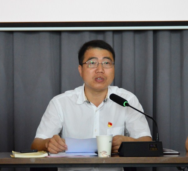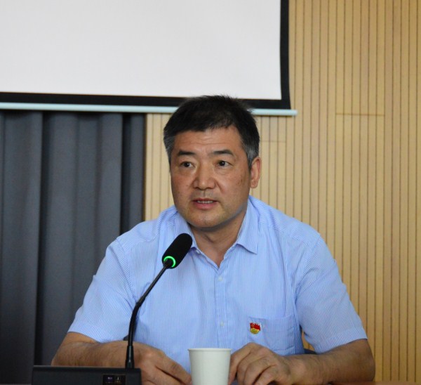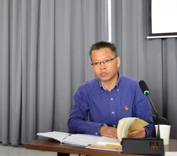 薛和有副書記結(jié)合主題教育中學(xué)習(xí)“兩書一章”的收獲、感悟和思考,圍繞“四個意識”“四個自信”“兩個維護(hù)”要求,以“講政治、懂規(guī)矩、守紀(jì)律、勇?lián)?dāng)”為題授課。